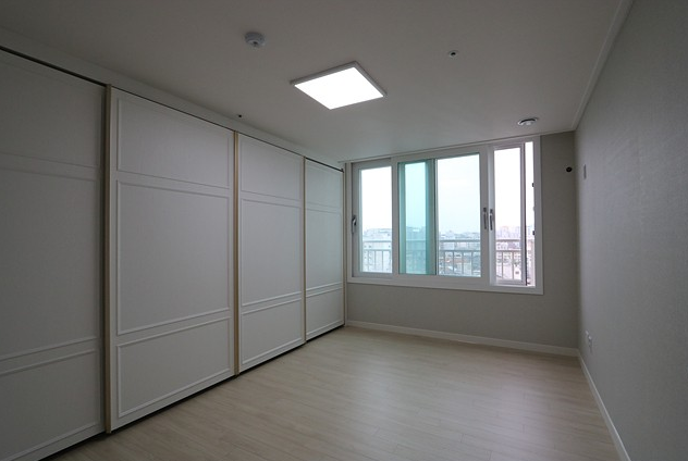 큰방은 빌트인 옷장과 벽면, 천장을 모두 밝은 색상으로 꾸몄고 창문은 2중 새시로 시공했어요.