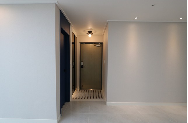 바닥 역시 대리석 바닥을 사용했으며 천장에는 3개의 LED 등을 간격에 맞춰 설치했어요.