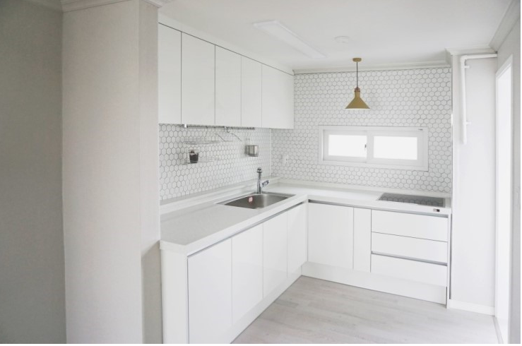주방도 벽면부터 시작해 조리대까지 전부 화이트 색상을 입혔어요.