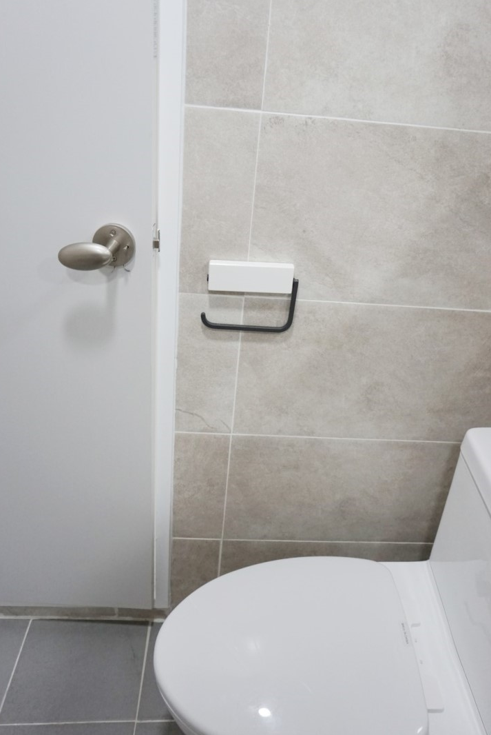 기본적으로 구식 변기와 세면대를 모두 교체했으며 벽면은 모래 느낌의 타일을 시공했습니다.