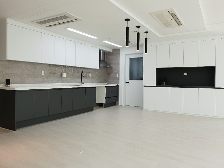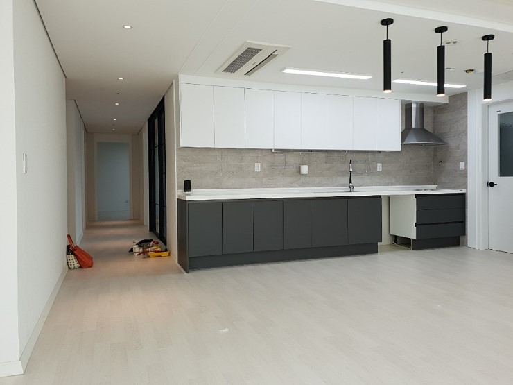 주방 메인조명은 세로로 긴 형태의 조명을 3개 설치했답니다.