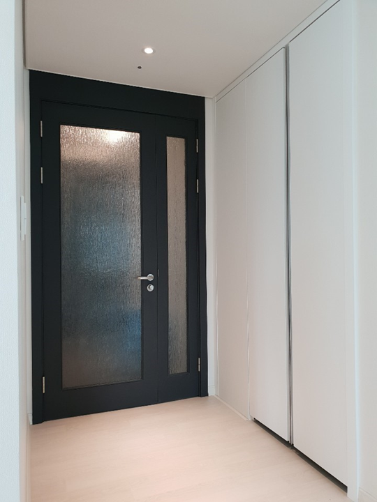 안방의 도어는 특이하게 일반적인 형식이 아닌 유리도어 형식으로 시공했답니다.
