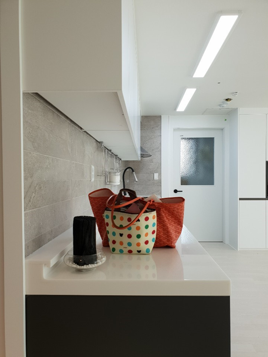 주방의 보조조명은 LED 매립등으로 시공하여 깔끔함에 포인트를 주었답니다.