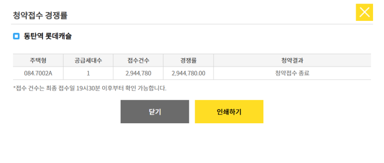 동탄역 롯데캐슬 경쟁률
