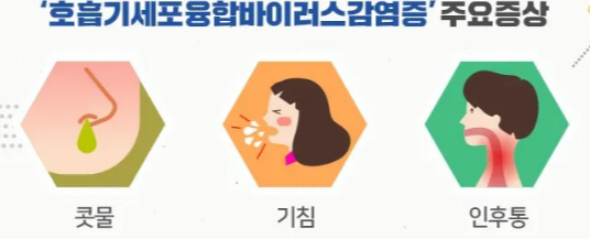 한국말로 호흡기세포융합바이러스라고 하는데요, 이 바이러스는 코의 점막을 통해 옮기는 성질을 가지고 있어요.