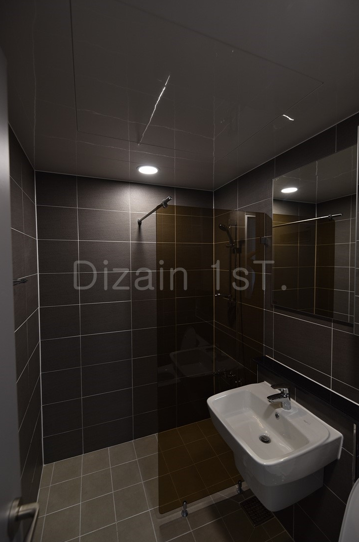 천장에는 다운라이트 조명을 설치해서 은은하게 욕실을 비춰주고 있어요.