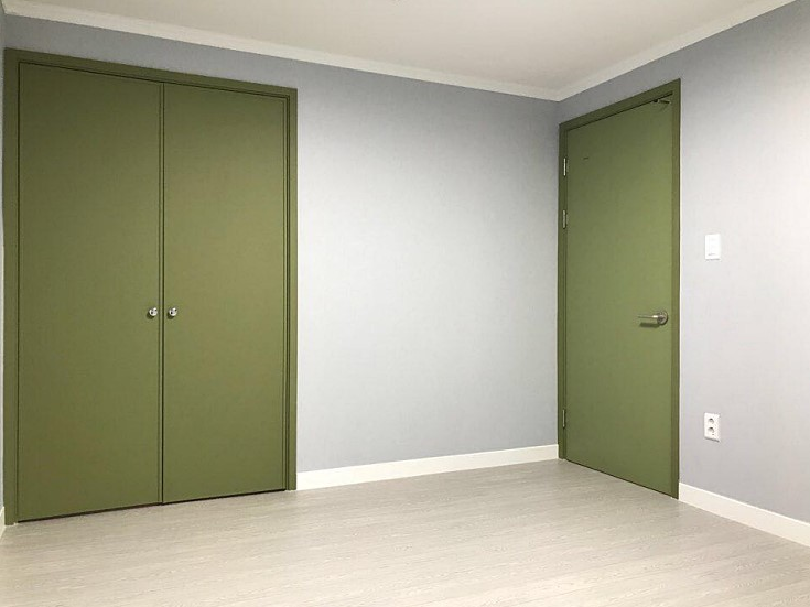 바로 방문과 붙박이장을 모두 녹색 색상으로 선택했다는 건데요,