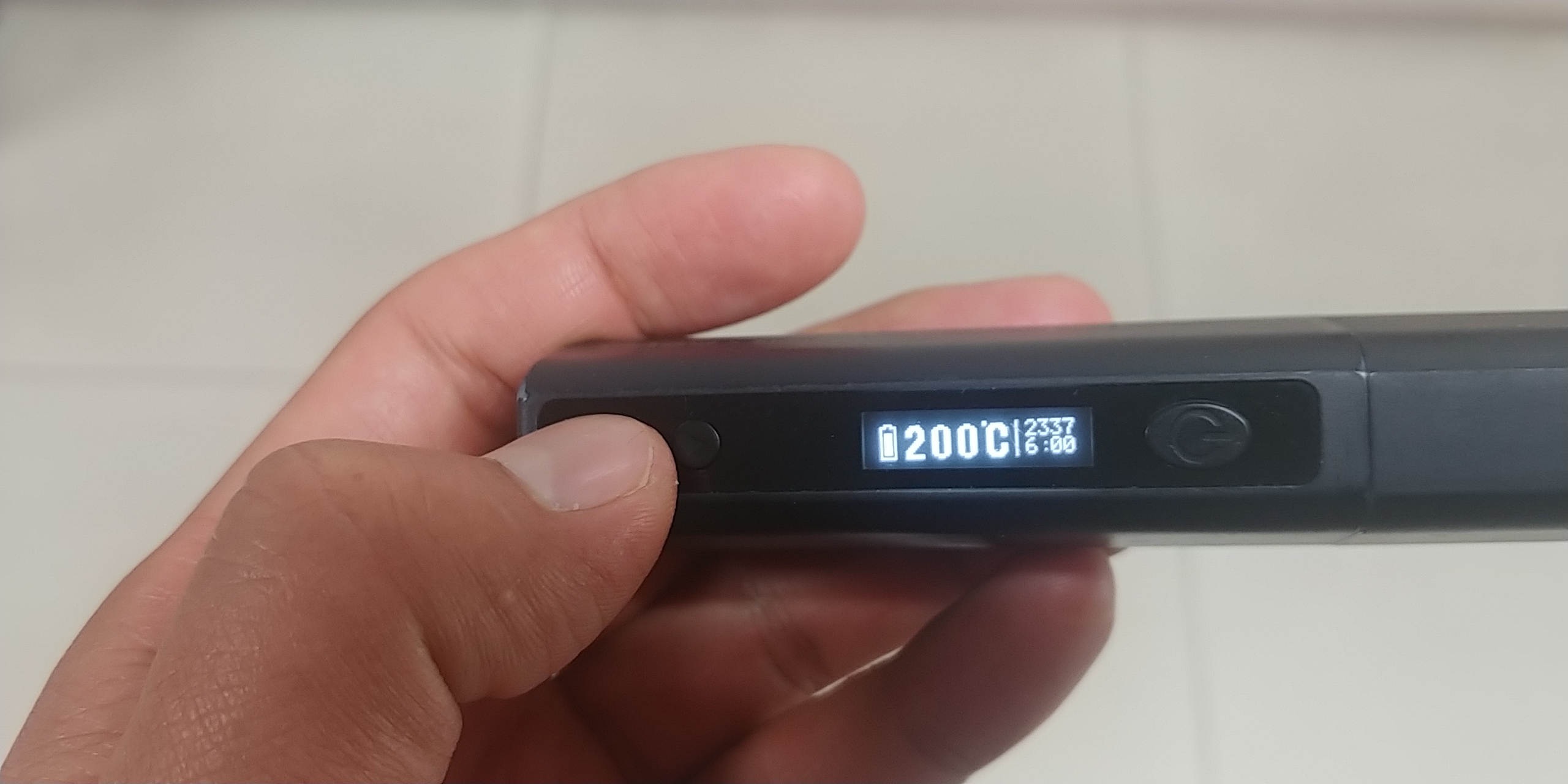 디스플레이 옆에 위치한 저 전원 버튼을 한 번 클릭하면 디스플레이에 배터리 잔량과 설정온도,