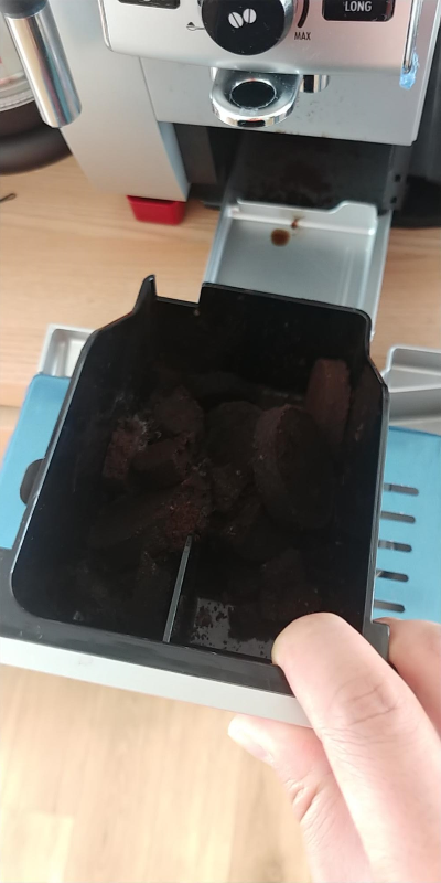 또한 하단 거치대를 빼면 커피 찌꺼기 통이 보여요. 이것 또한 탈착 해서 비워주면 되는데요,