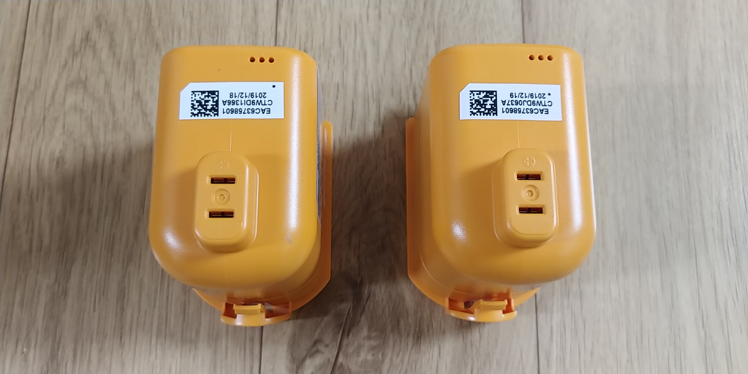 본체를 걸어두는 크레들에 하나,본체에 하나 2개의 배터리가 있긴 하지만 배터리 하나에 사용시간이 그리 길진 않았어요. 전 그래서 먼지 흡입에 하나를 쓰고 물걸레 청소에 하나를 쓰고 있답니다.
